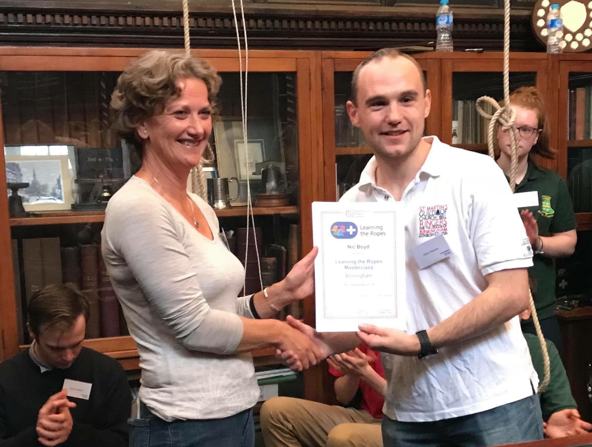 Receiving masterclass certificate from ringing master for St Martins Guild and tutor for Birmingham school of ringing_Arthur Reeve